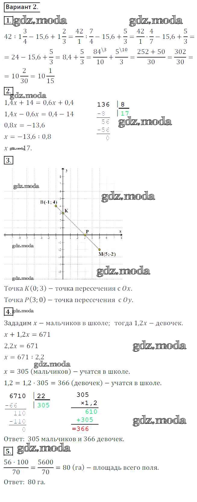 ГДЗ решение к заданию № 2 Математика 6 класс контрольные работы Жохов В.И. Мнемозина 2011 ФГОС бесплатно на гдз.мода!