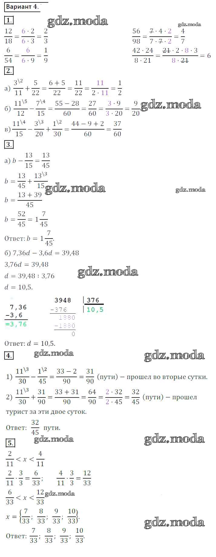 ГДЗ решение к заданию № 4 Математика 6 класс контрольные работы Жохов В.И. Мнемозина 2011 ФГОС бесплатно на гдз.мода!