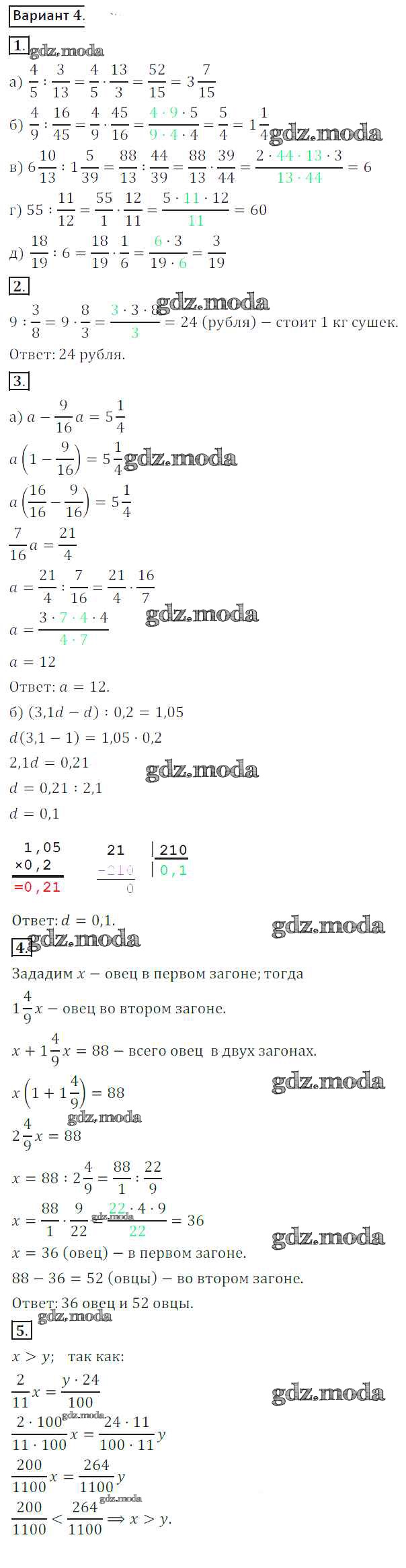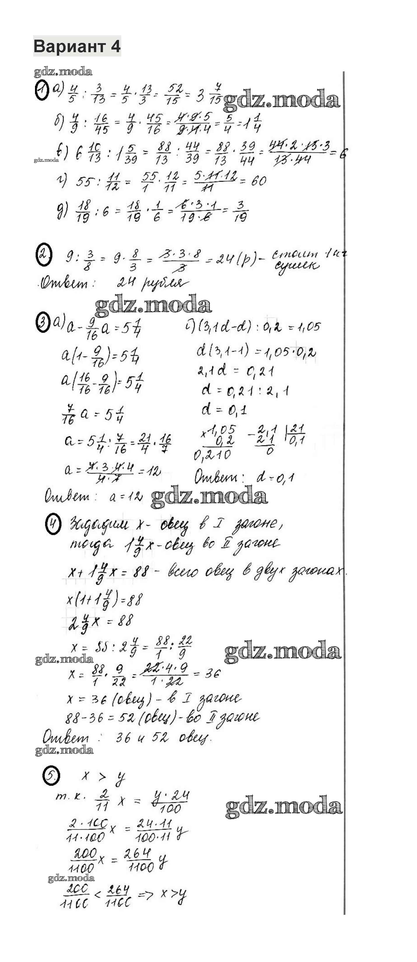 ГДЗ решение к заданию № 4 Математика 6 класс контрольные работы Жохов В.И. Мнемозина 2011 ФГОС бесплатно на гдз.мода!