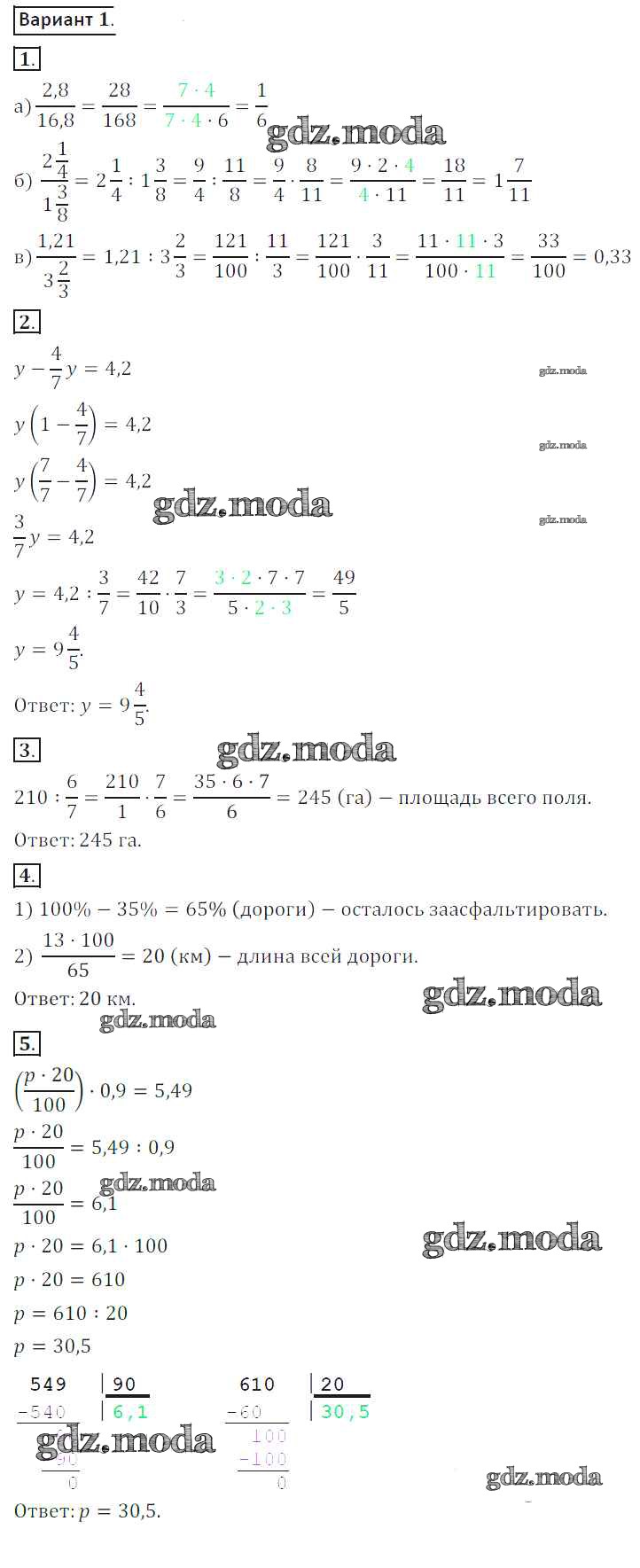 ГДЗ решение к заданию № 1 Математика 6 класс контрольные работы Жохов В.И. Мнемозина 2011 ФГОС бесплатно на гдз.мода!