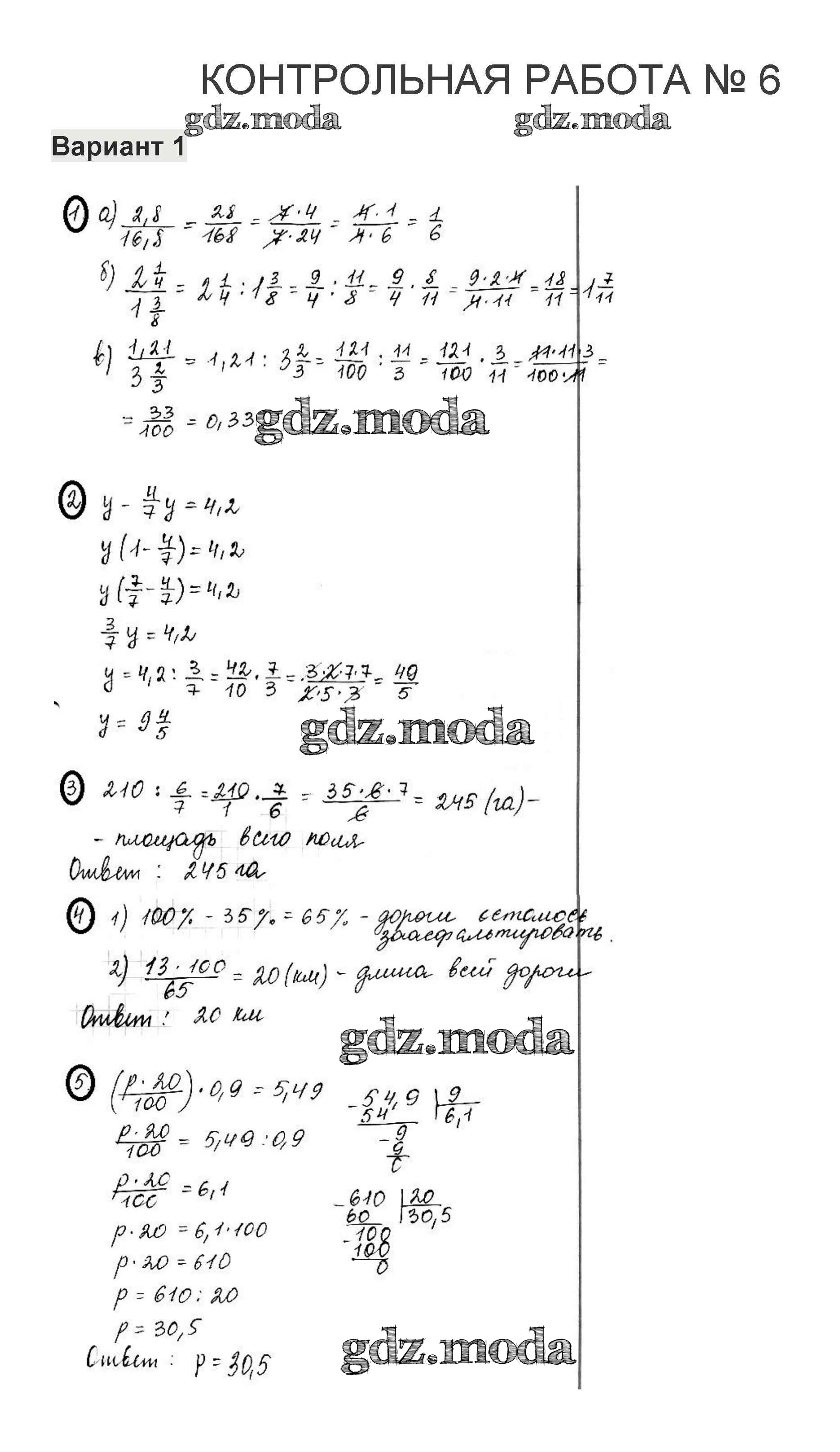 ОТВЕТ на задание № 1 Контрольные работы по Математике 6 класс Жохов