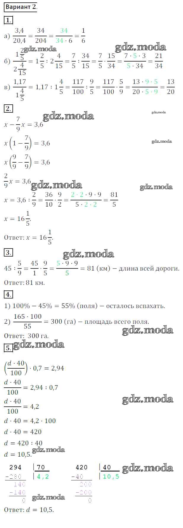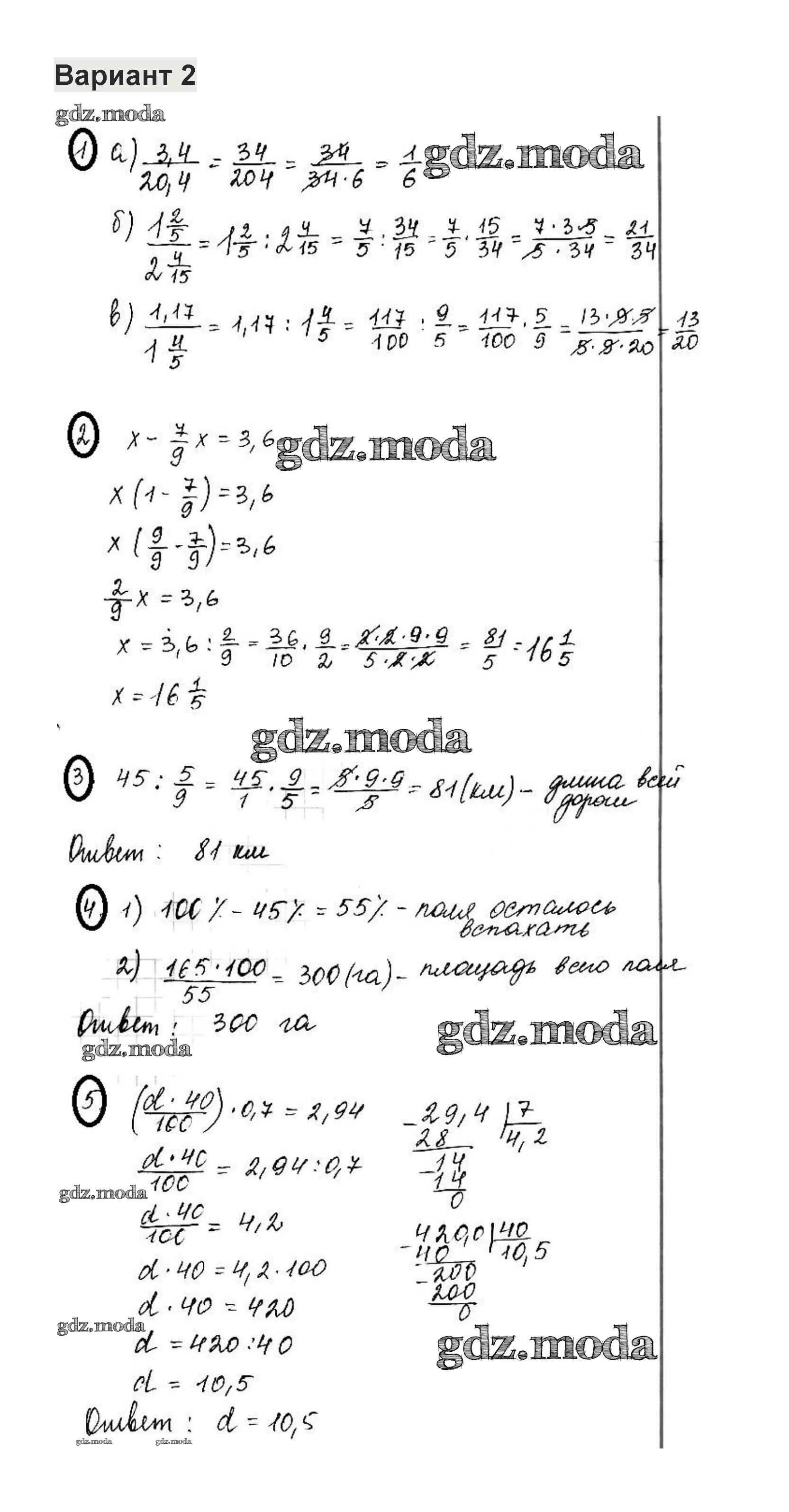 ГДЗ решение к заданию № 2 Математика 6 класс контрольные работы Жохов В.И. Мнемозина 2011 ФГОС бесплатно на гдз.мода!