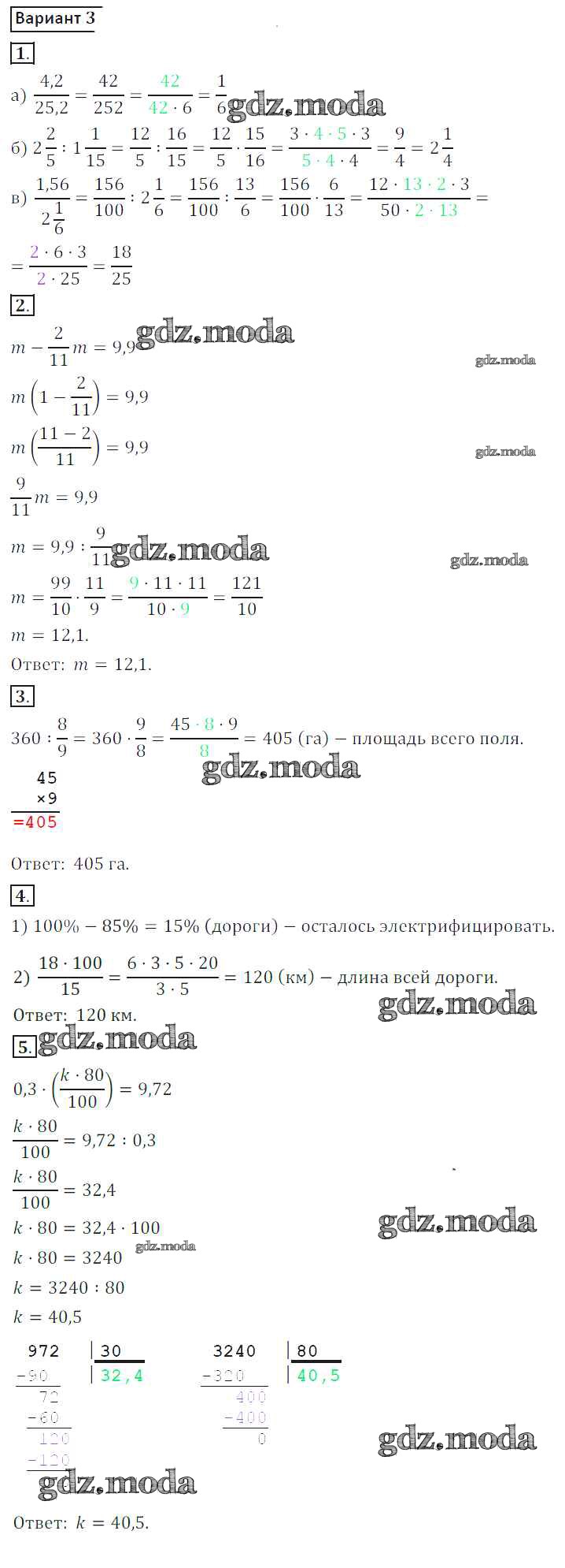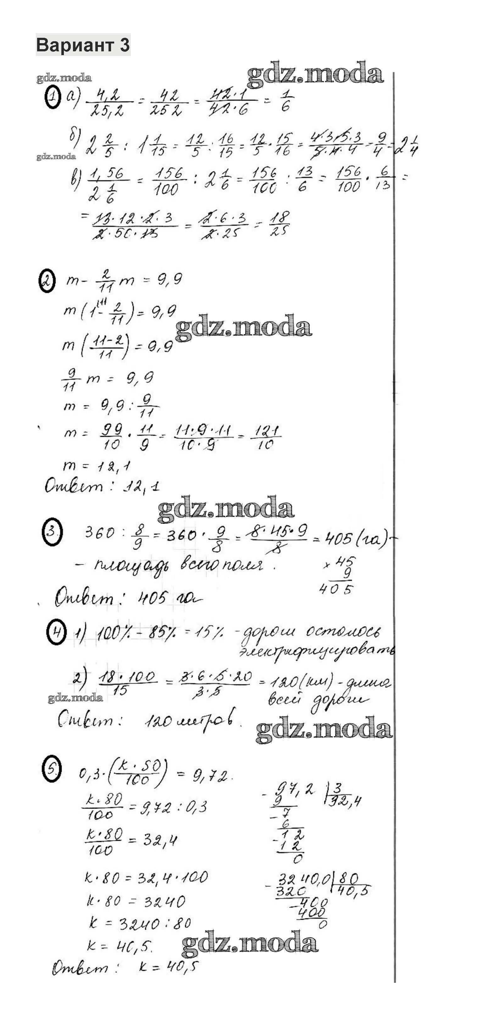 ГДЗ решение к заданию № 3 Математика 6 класс контрольные работы Жохов В.И. Мнемозина 2011 ФГОС бесплатно на гдз.мода!