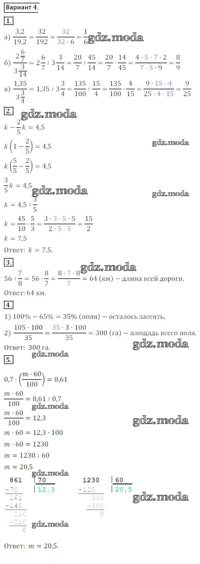 ГДЗ решение к заданию № 4 Математика 6 класс контрольные работы Жохов В.И. Мнемозина 2011 ФГОС бесплатно на гдз.мода!