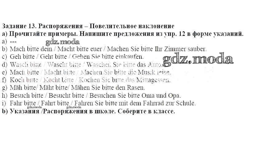 ГДЗ решение к заданию № 13 Немецкий язык 6 класс Аверин Просвещение 2016 ФГОС бесплатно на гдз.мода!