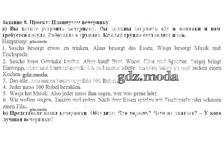 ГДЗ решение к заданию № 8 Немецкий язык 6 класс Аверин Просвещение 2016 ФГОС бесплатно на гдз.мода!