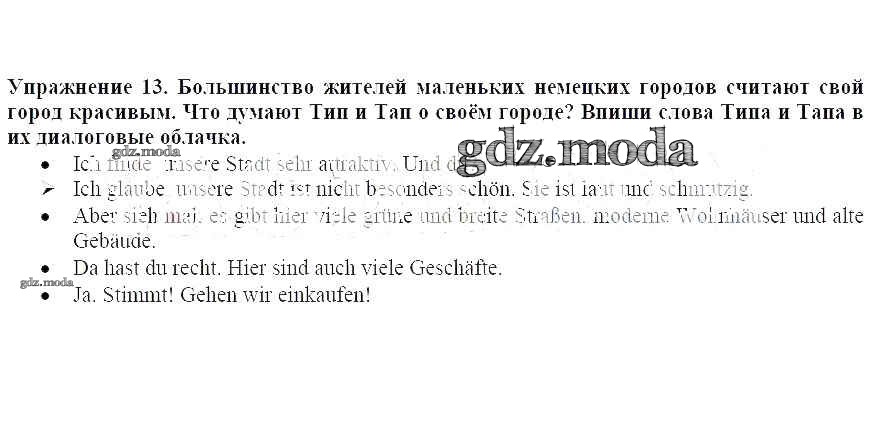 ГДЗ решение к заданию № 13 Немецкий язык 6 класс рабочая тетрадь Бим Просвещение 2008 ФГОС бесплатно на гдз.мода!