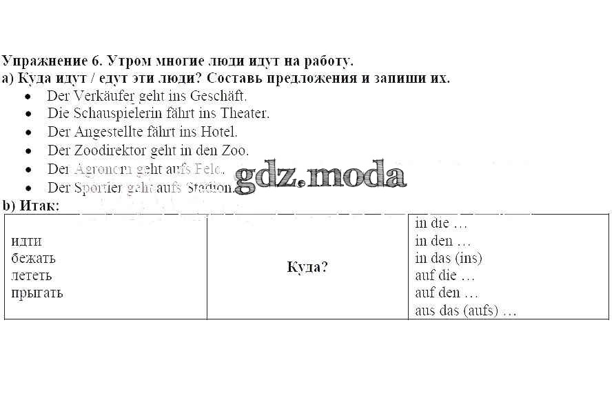 ГДЗ решение к заданию № 6 Немецкий язык 6 класс рабочая тетрадь Бим Просвещение 2008 ФГОС бесплатно на гдз.мода!