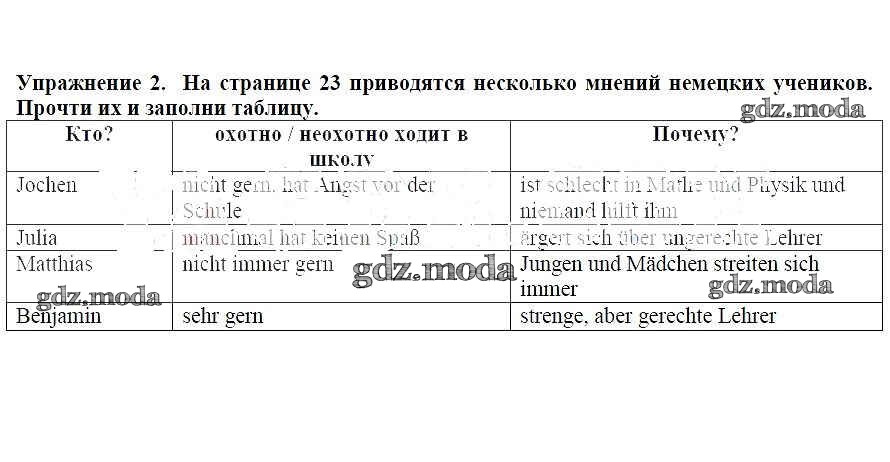 ГДЗ решение к заданию № 2 Немецкий язык 6 класс рабочая тетрадь Бим Просвещение 2008 ФГОС бесплатно на гдз.мода!