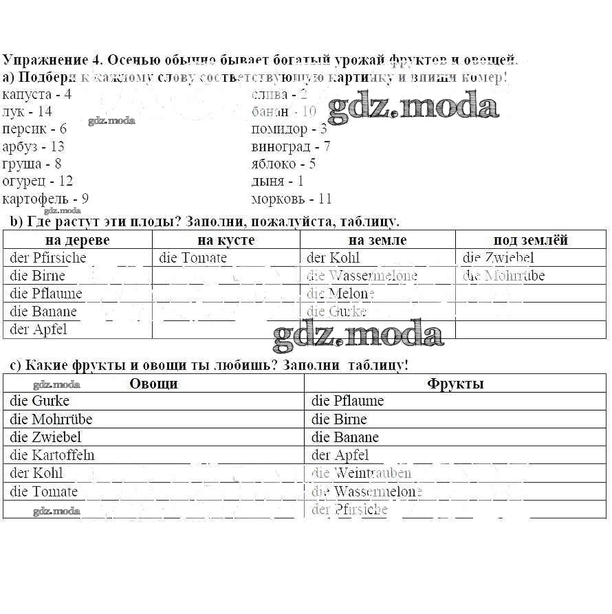 ГДЗ решение к заданию № 4 Немецкий язык 6 класс рабочая тетрадь Бим Просвещение 2008 ФГОС бесплатно на гдз.мода!