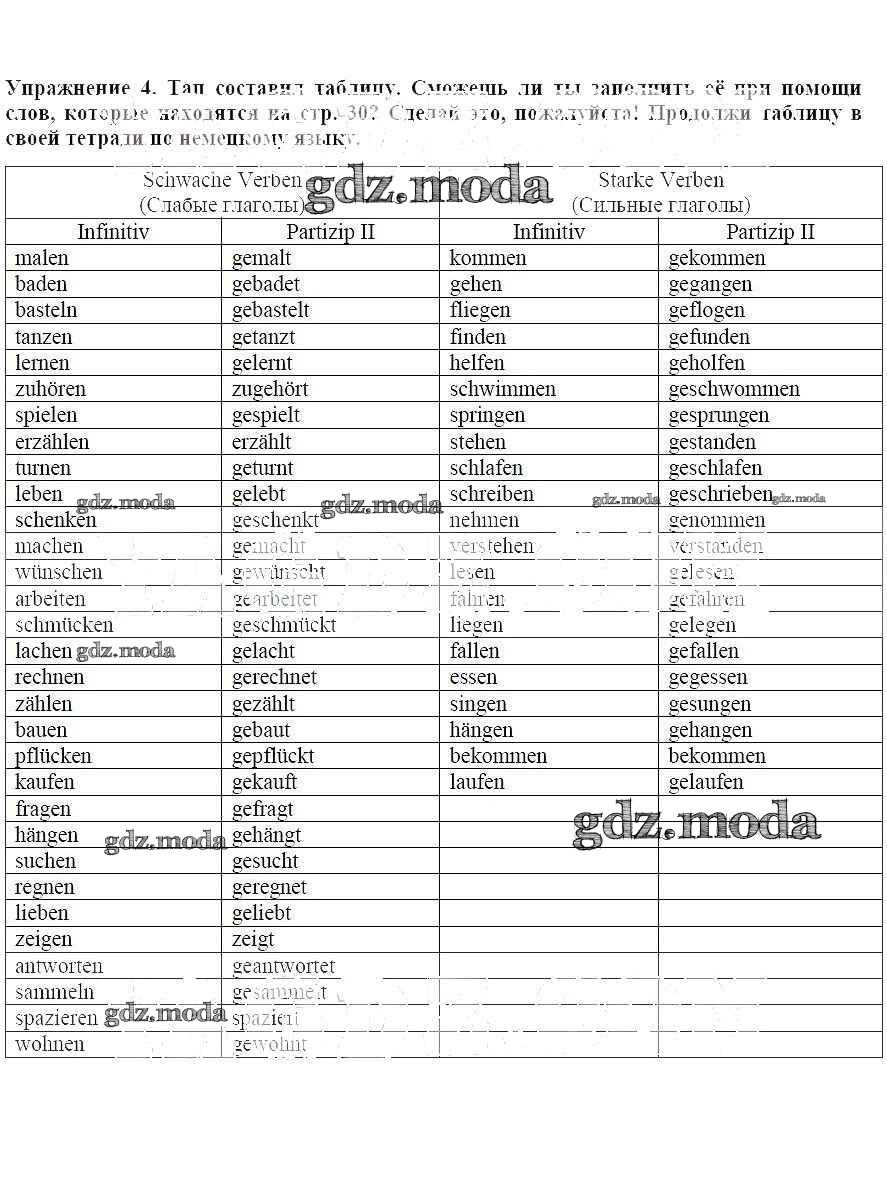 ГДЗ решение к заданию № 4 Немецкий язык 6 класс рабочая тетрадь Бим Просвещение 2008 ФГОС бесплатно на гдз.мода!
