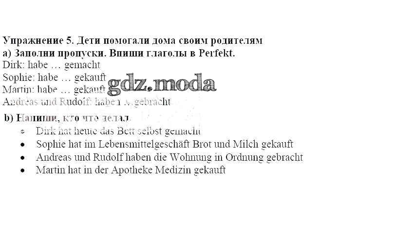 ГДЗ решение к заданию № 5 Немецкий язык 6 класс рабочая тетрадь Бим Просвещение 2008 ФГОС бесплатно на гдз.мода!