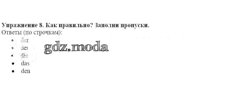 ГДЗ решение к заданию № 8 Немецкий язык 6 класс рабочая тетрадь Бим Просвещение 2008 ФГОС бесплатно на гдз.мода!