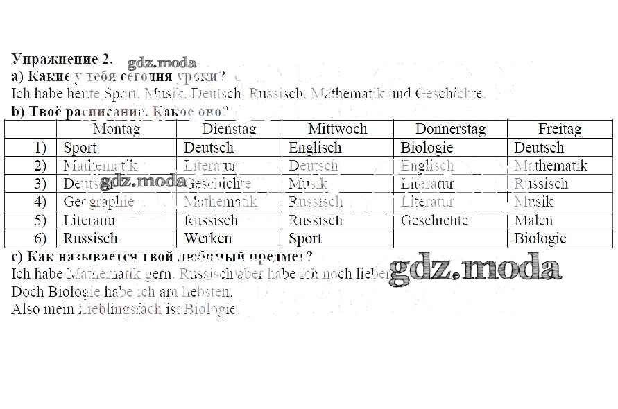 ГДЗ решение к заданию № 2 Немецкий язык 6 класс рабочая тетрадь Бим Просвещение 2008 ФГОС бесплатно на гдз.мода!