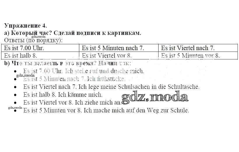 ГДЗ решение к заданию № 4 Немецкий язык 6 класс рабочая тетрадь Бим Просвещение 2008 ФГОС бесплатно на гдз.мода!