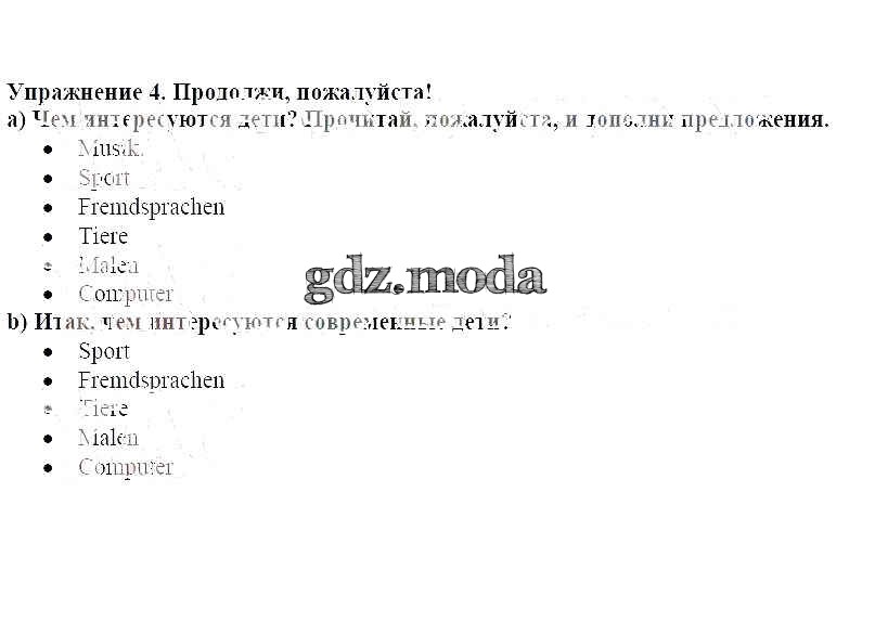 ГДЗ решение к заданию № 4 Немецкий язык 6 класс рабочая тетрадь Бим Просвещение 2008 ФГОС бесплатно на гдз.мода!