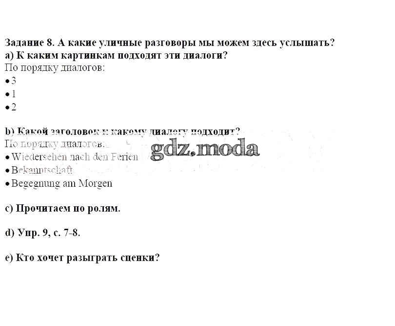 ГДЗ решение к заданию № 8 Немецкий язык 6 класс Бим Просвещение 2014 Часть 1, Часть 2 ФГОС бесплатно на гдз.мода!