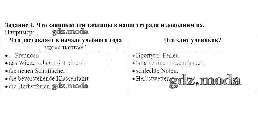 ГДЗ решение к заданию № 4 Немецкий язык 6 класс Бим Просвещение 2014 Часть 1, Часть 2 ФГОС бесплатно на гдз.мода!