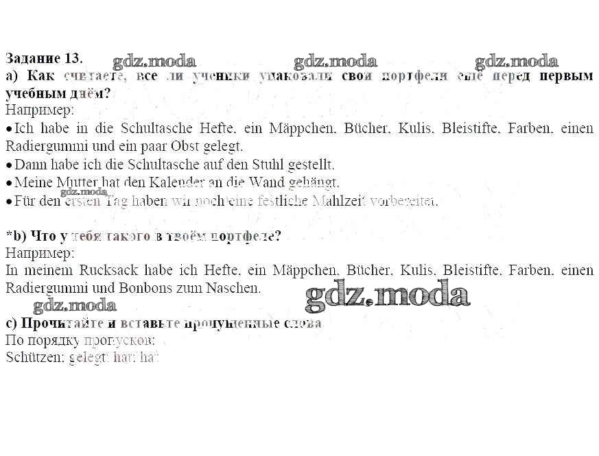 ГДЗ решение к заданию № 13 Немецкий язык 6 класс Бим Просвещение 2014 Часть 1, Часть 2 ФГОС бесплатно на гдз.мода!