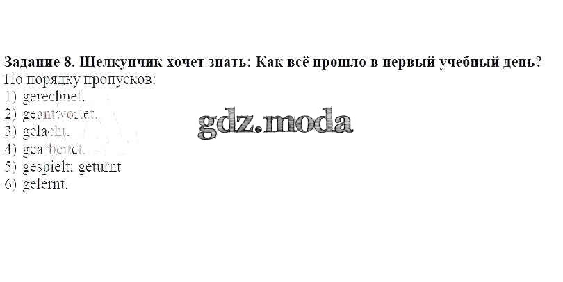 ГДЗ решение к заданию № 8 Немецкий язык 6 класс Бим Просвещение 2014 Часть 1, Часть 2 ФГОС бесплатно на гдз.мода!