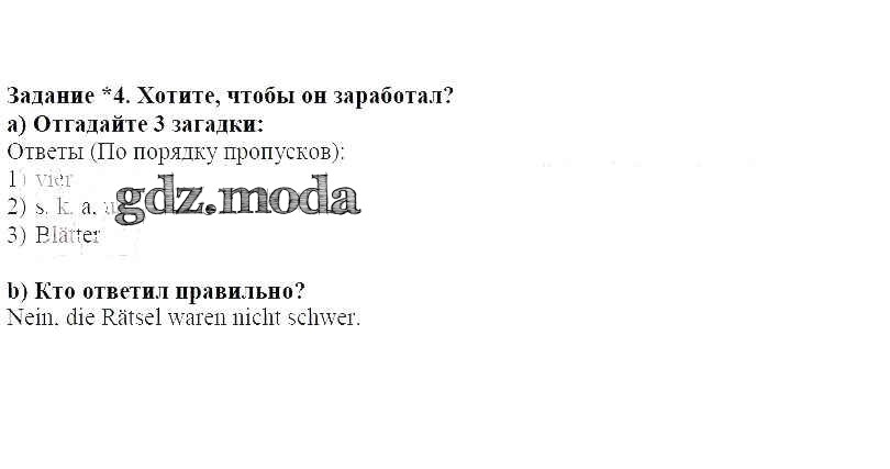ГДЗ решение к заданию № 4 Немецкий язык 6 класс Бим Просвещение 2014 Часть 1, Часть 2 ФГОС бесплатно на гдз.мода!