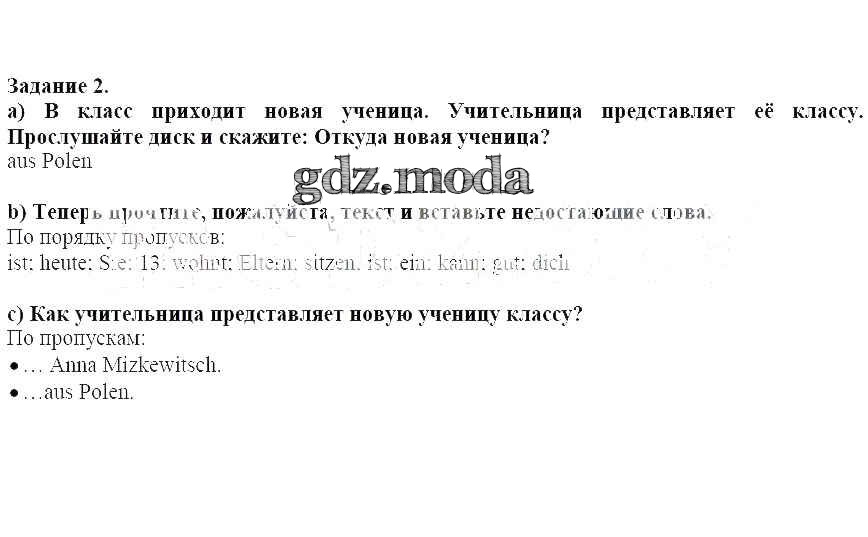 ГДЗ решение к заданию № 2 Немецкий язык 6 класс Бим Просвещение 2014 Часть 1, Часть 2 ФГОС бесплатно на гдз.мода!