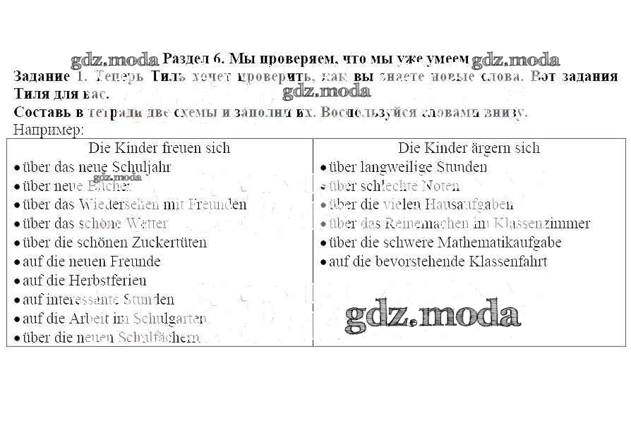 ГДЗ решение к заданию № 1 Немецкий язык 6 класс Бим Просвещение 2014 Часть 1, Часть 2 ФГОС бесплатно на гдз.мода!