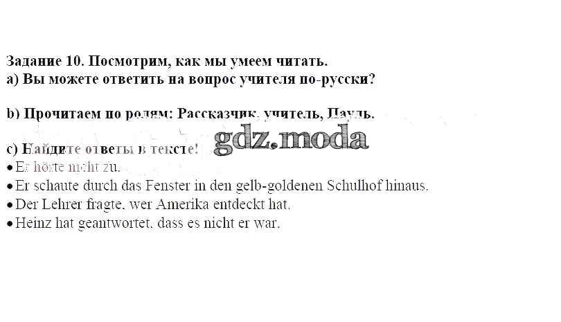 ГДЗ решение к заданию № 10 Немецкий язык 6 класс Бим Просвещение 2014 Часть 1, Часть 2 ФГОС бесплатно на гдз.мода!