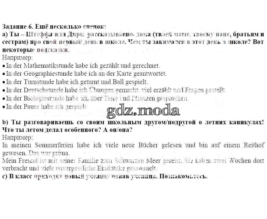 ГДЗ решение к заданию № 6 Немецкий язык 6 класс Бим Просвещение 2014 Часть 1, Часть 2 ФГОС бесплатно на гдз.мода!