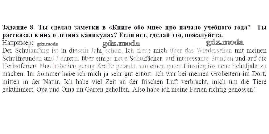 ГДЗ решение к заданию № 8 Немецкий язык 6 класс Бим Просвещение 2014 Часть 1, Часть 2 ФГОС бесплатно на гдз.мода!