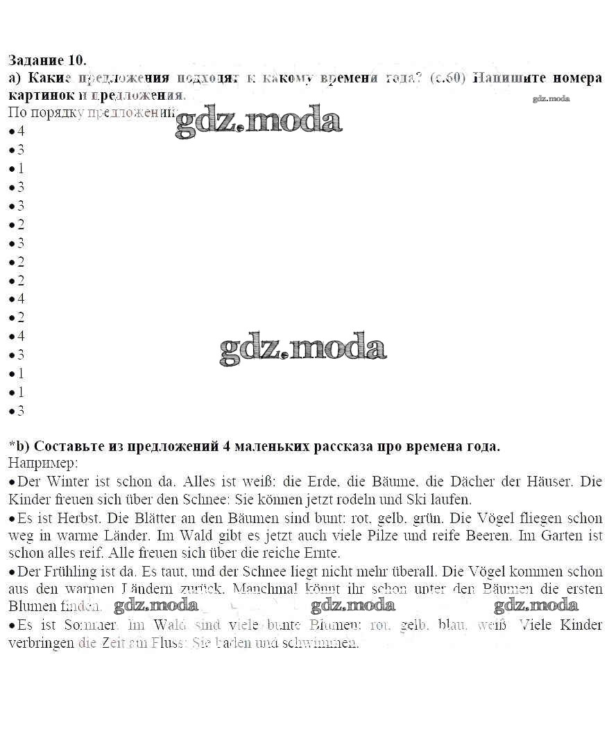 ГДЗ решение к заданию № 10 Немецкий язык 6 класс Бим Просвещение 2014 Часть 1, Часть 2 ФГОС бесплатно на гдз.мода!