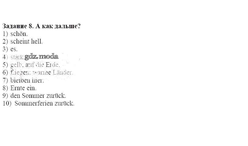 ГДЗ решение к заданию № 8 Немецкий язык 6 класс Бим Просвещение 2014 Часть 1, Часть 2 ФГОС бесплатно на гдз.мода!