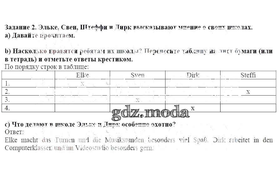 ГДЗ решение к заданию № 2 Немецкий язык 6 класс Бим Просвещение 2014 Часть 1, Часть 2 ФГОС бесплатно на гдз.мода!