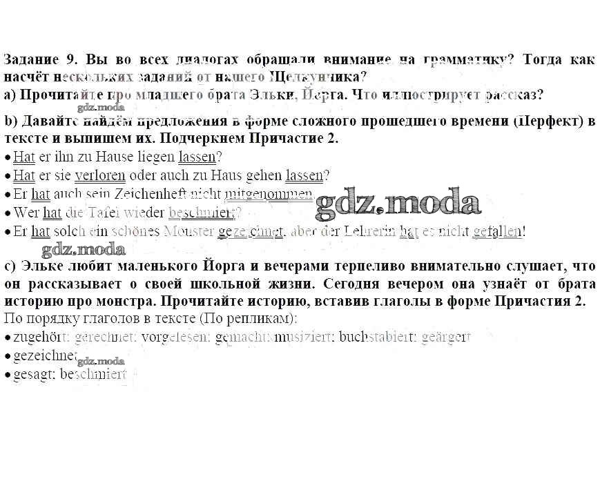 ГДЗ решение к заданию № 9 Немецкий язык 6 класс Бим Просвещение 2014 Часть 1, Часть 2 ФГОС бесплатно на гдз.мода!