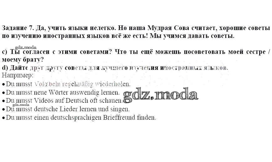 ОТВЕТ на задание № 7 Учебник по Немецкому языку 6 класс Бим