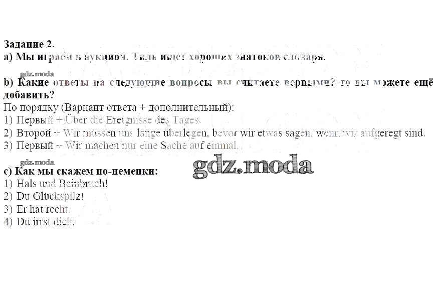 ОТВЕТ на задание № 2 Учебник по Немецкому языку 6 класс Бим