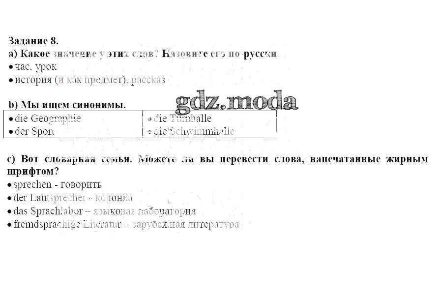 ГДЗ решение к заданию № 8 Немецкий язык 6 класс Бим Просвещение 2014 Часть 1, Часть 2 ФГОС бесплатно на гдз.мода!