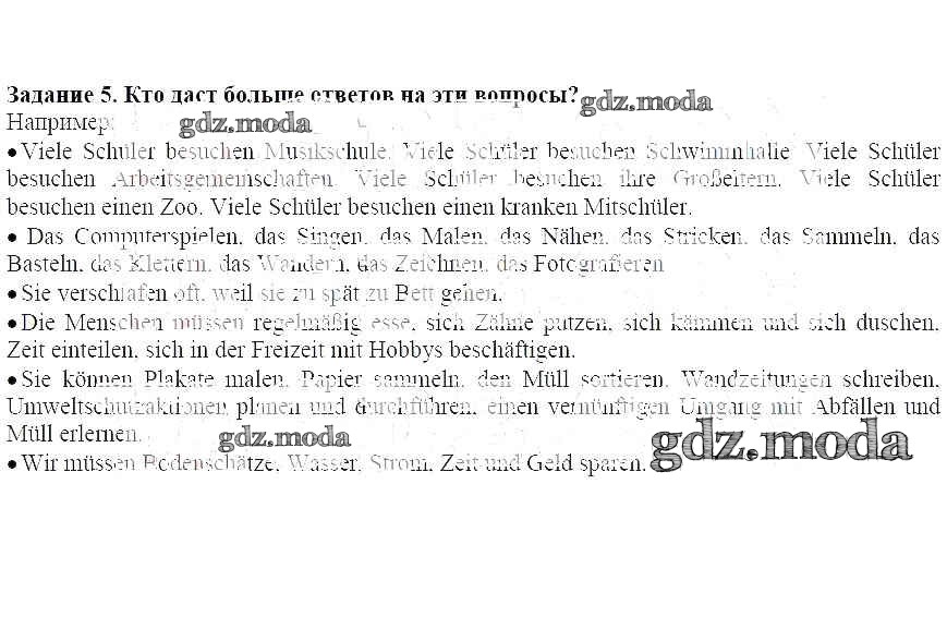 ГДЗ решение к заданию № 5 Немецкий язык 6 класс Бим Просвещение 2014 Часть 1, Часть 2 ФГОС бесплатно на гдз.мода!