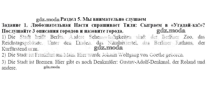 ОТВЕТ на задание № 1 Учебник по Немецкому языку 6 класс Бим