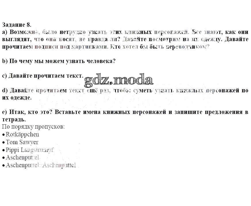 ГДЗ решение к заданию № 8 Немецкий язык 6 класс Бим Просвещение 2014 Часть 1, Часть 2 ФГОС бесплатно на гдз.мода!