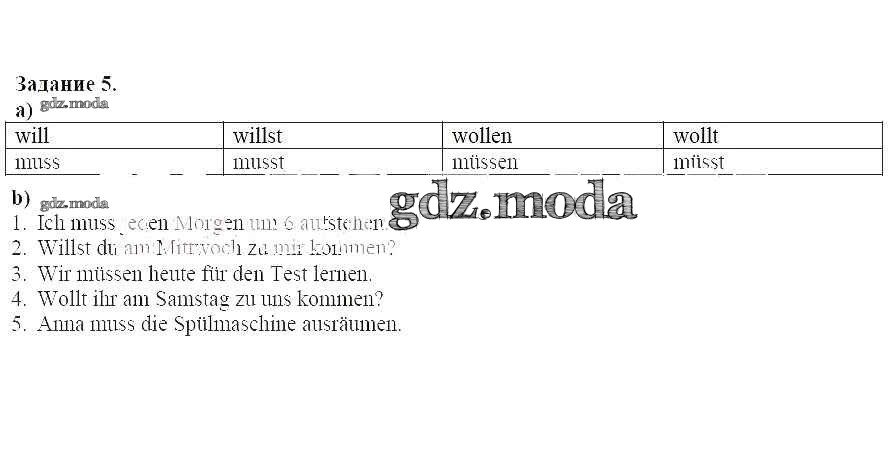 ГДЗ решение к заданию № 5 Немецкий язык 6 класс рабочая тетрадь Аверин Просвещение 2016 ФГОС бесплатно на гдз.мода!