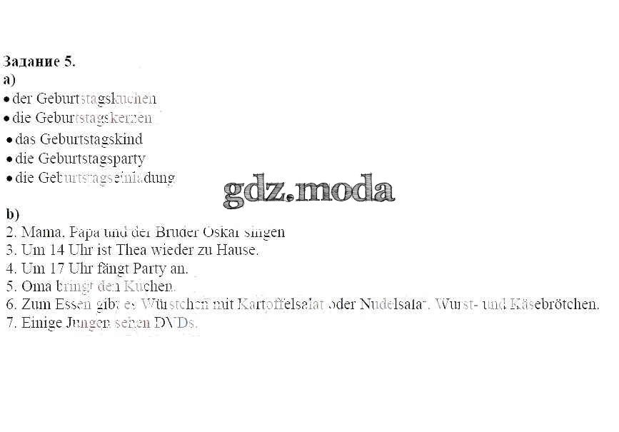 ГДЗ решение к заданию № 5 Немецкий язык 6 класс рабочая тетрадь Аверин Просвещение 2016 ФГОС бесплатно на гдз.мода!