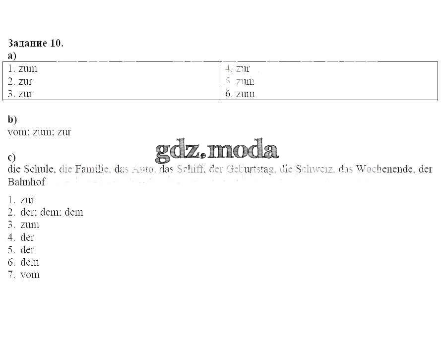 ГДЗ решение к заданию № 10 Немецкий язык 6 класс рабочая тетрадь Аверин Просвещение 2016 ФГОС бесплатно на гдз.мода!