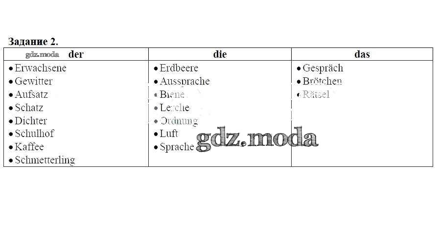 ГДЗ решение к заданию № 2 Немецкий язык 6 класс рабочая тетрадь Радченко Дрофа 2015 Часть 1, Часть 2 ФГОС бесплатно на гдз.мода!