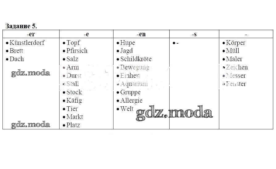 ГДЗ решение к заданию № 5 Немецкий язык 6 класс рабочая тетрадь Радченко Дрофа 2015 Часть 1, Часть 2 ФГОС бесплатно на гдз.мода!