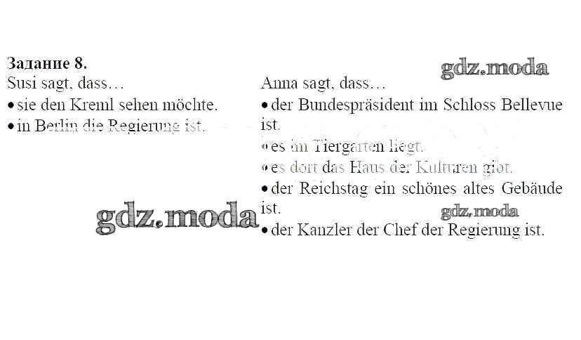 ГДЗ решение к заданию № 8 Немецкий язык 6 класс рабочая тетрадь Радченко Дрофа 2015 Часть 1, Часть 2 ФГОС бесплатно на гдз.мода!