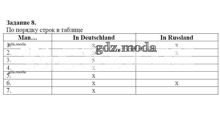 ГДЗ решение к заданию № 8 Немецкий язык 6 класс рабочая тетрадь Радченко Дрофа 2015 Часть 1, Часть 2 ФГОС бесплатно на гдз.мода!