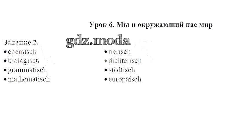 ГДЗ решение к заданию № 2 Немецкий язык 6 класс Радченко Хебелер Дрофа 2014 бесплатно на гдз.мода!