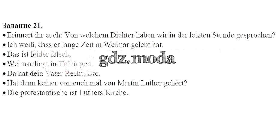 ГДЗ решение к заданию № 21 Немецкий язык 6 класс Радченко Хебелер Дрофа 2014 бесплатно на гдз.мода!