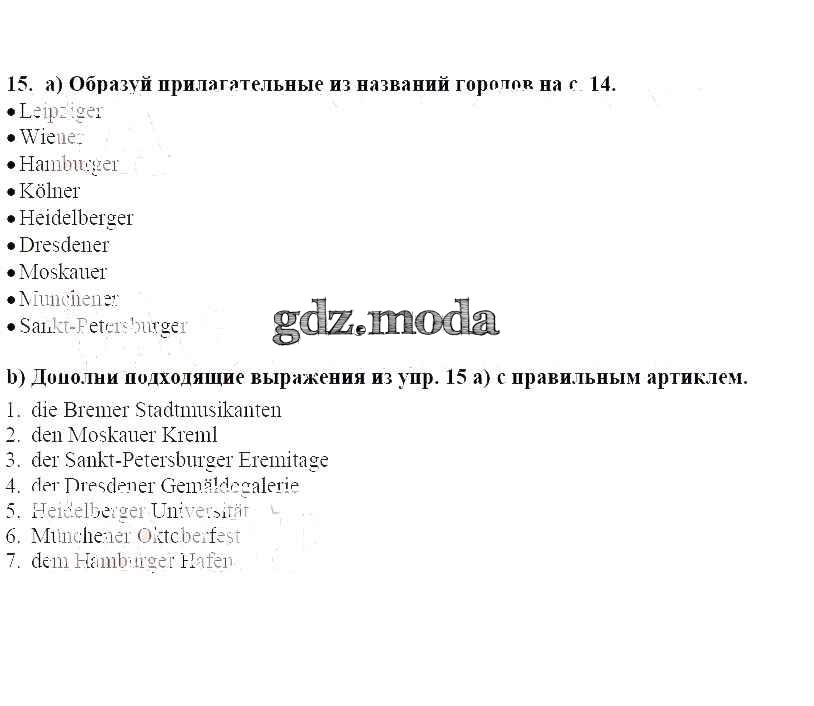 ГДЗ решение к заданию № 15 Немецкий язык 6 класс рабочая тетрадь Радченко Wunderkinder Просвещение 2012 бесплатно на гдз.мода!